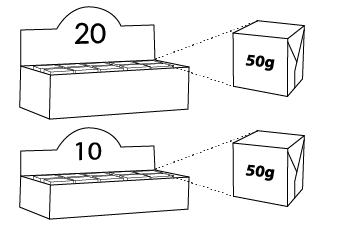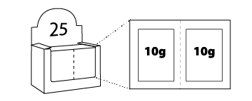Display de 25 pares de sobres de 13 gramos cada uno, en cajas de 5,2 Kg (8 displays x 650 g)